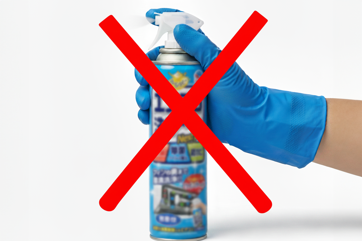 手軽に見える「エアコン洗浄スプレー」ですが、その使用はプロからは推奨されていません。手軽さの裏には、重大なリスクが隠されています。
