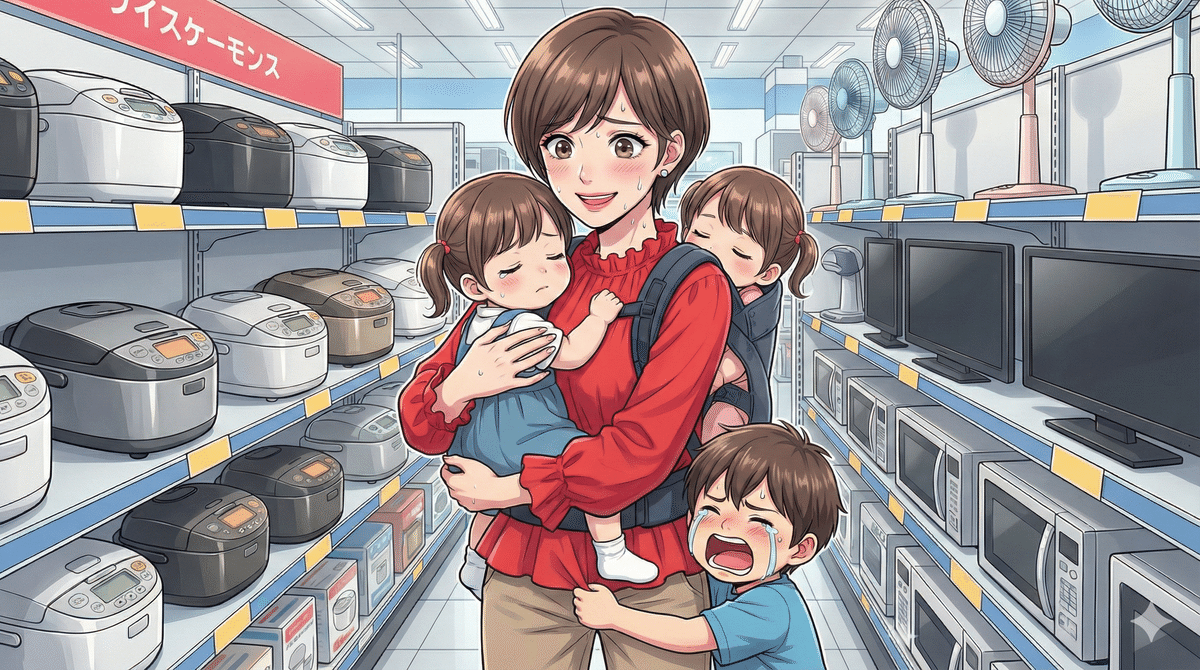 子供3人を連れて、店内で商品をリサーチする過酷さを。